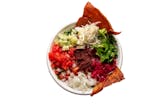 Bed of rice or mujaddra with your option of falafel or chicken shawarma topped with tomato cucumber and cabbage.