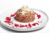 Mixed lentil with cracked wheat and carmalized onion topped of with dill sauce and cabbege .
